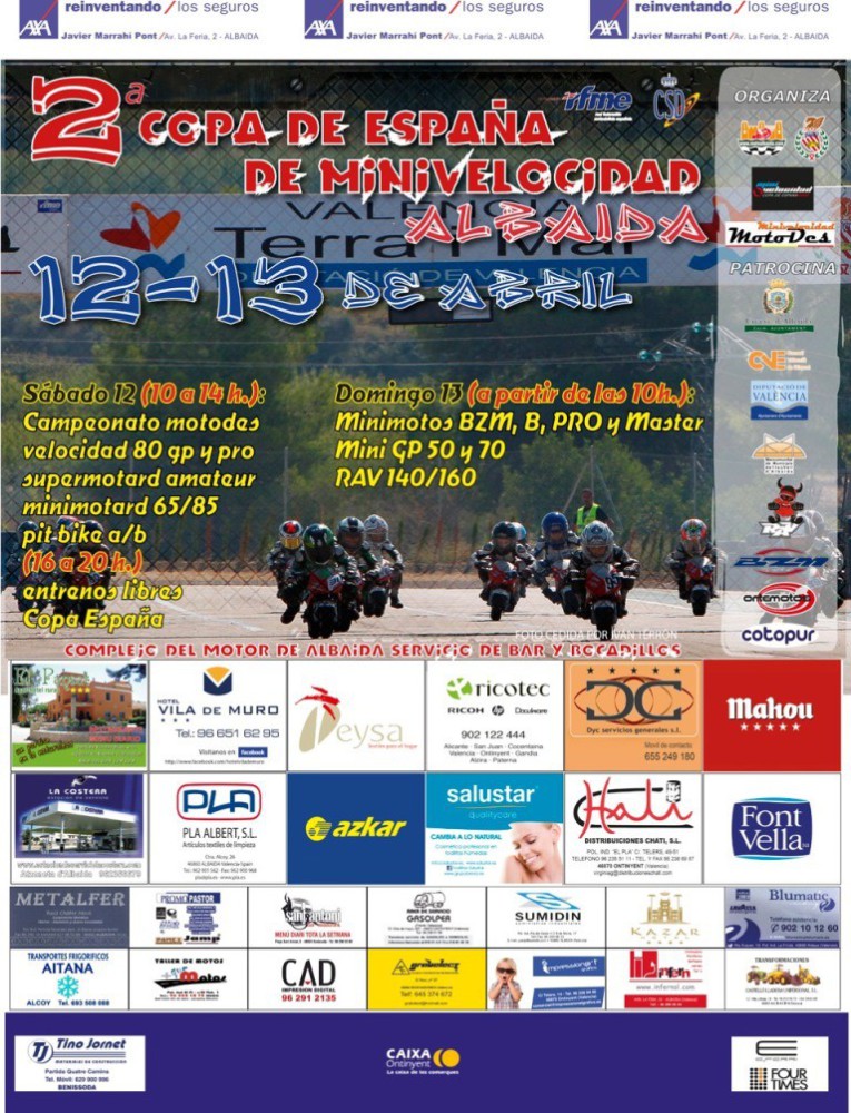 Este fin de semana se celebrará en el Complex del Motor de Albaida la primera prueba de la RFME Copa de España de Minivelocidad 2014. Así que los pilotos del nacional de minivelocidad tienen su primera cita de la temporada.