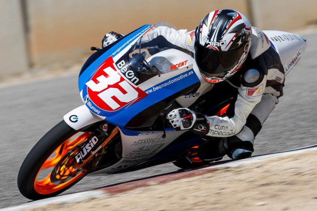 Pre Moto3 se ha colocado en parrilla a las 12’00h. Vicente Pérez, Aleix Viu y Borja Sánchez han ocupado la primera fila. Cuando se habían dado dos vueltas, han sacado bandera roja por la caída de un piloto, reanudándose la carrera a 6 vueltas. En ese momento ha empezado a llover y todos los equipos han cambiado las ruedas a contrarreloj en parrilla.